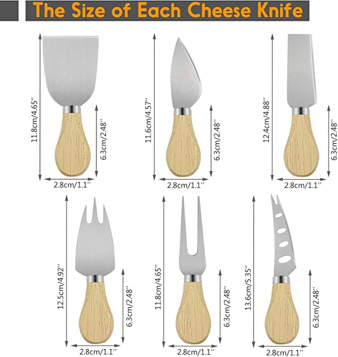 Premium Quality - The cheese knives set are all made of durable stainless steel blade and ergonomic wooden handles. Good quality cutlery that you would have no problem using to decorate a table for an evening with guests.