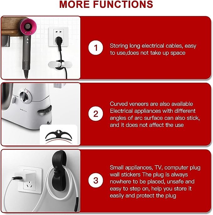 Strong adhesion - Our Cord organizer is made of International Standard strong 3M adhesive, which is stronger, firm, high temperature resistant, not easy to fall off, and can be reused without leaving any trace on the surface.