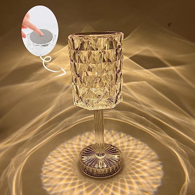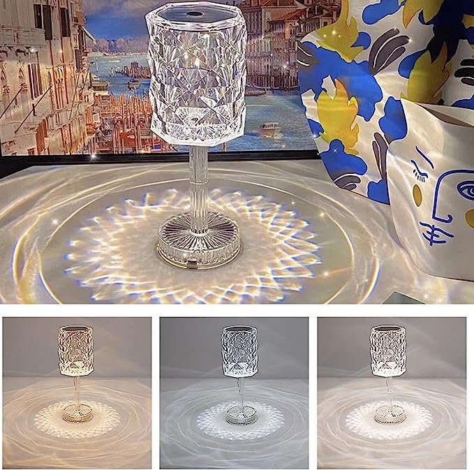Rose Crystal Table Lamp --Using special 3D technology, The refraction crystal lamp is bright and colorful, very practical. Turn on the lamp, the 3D visual effect is like a rose blooming on the table. The diamond-cut surface makes it shine, decorate your dining table and create a romantic and elegant space.