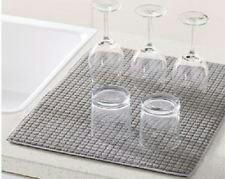 The Dish Drying Mat is an innovative solution to drying dishes, pots, pans, glassware, and cutleries. It is made of highly absorbent microfiber with a layer of foam which provides inner padding for delicate dishes and glassware. Great for use under a dish drying rack. It is fast drying and machine washable.