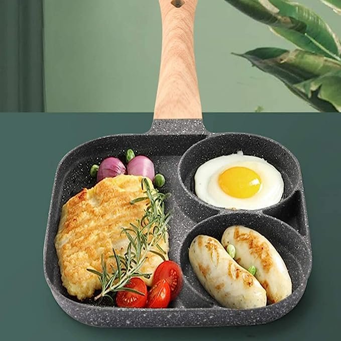 The pan can be used to make omelette, burger, pancake, etc as it features 2 round compartments to make cooking quick and easy along with a compartment for making hamburgers.