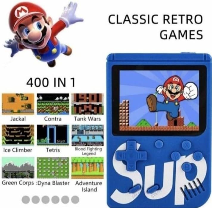 400 Classic Games: Includes iconic titles like Mario, Contra, Tank, and Aladdin for endless retro fun. Handheld & TV Compatible: Play on the go or connect to your TV for a big-screen gaming experience. Portable & Lightweight: Compact design makes it easy to carry and play anywhere, anytime. Rechargeable Battery: Long-lasting battery for hours of uninterrupted gaming. Perfect Gift: Ideal for kids, retro gaming enthusiasts, and anyone looking to relive the classics. Easy to Use: Simple controls for all ages, making it fun and accessible for the whole family. Durable Design: Built to last with a sturdy exterior for on-the-go gaming adventures.