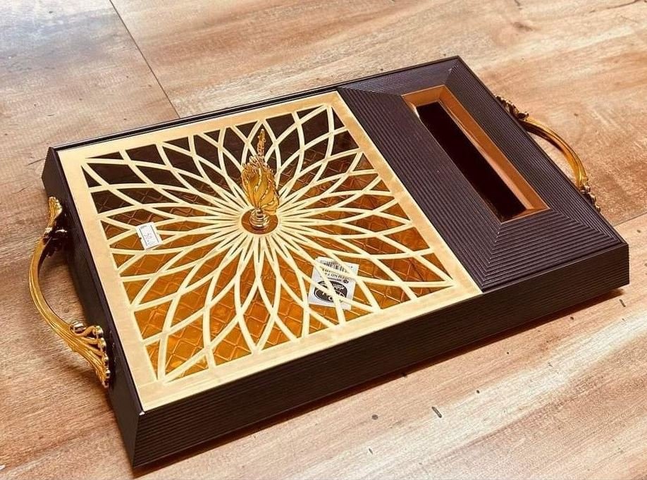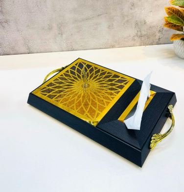 The elegant gold engraving and lid add a touch of elegance and sophistication making it a great addition to your home decor or a stunning centerpiece for special occasions Whether you're hosting a party or organizing your snacks this tray adds a touch of beauty and functionality to your space