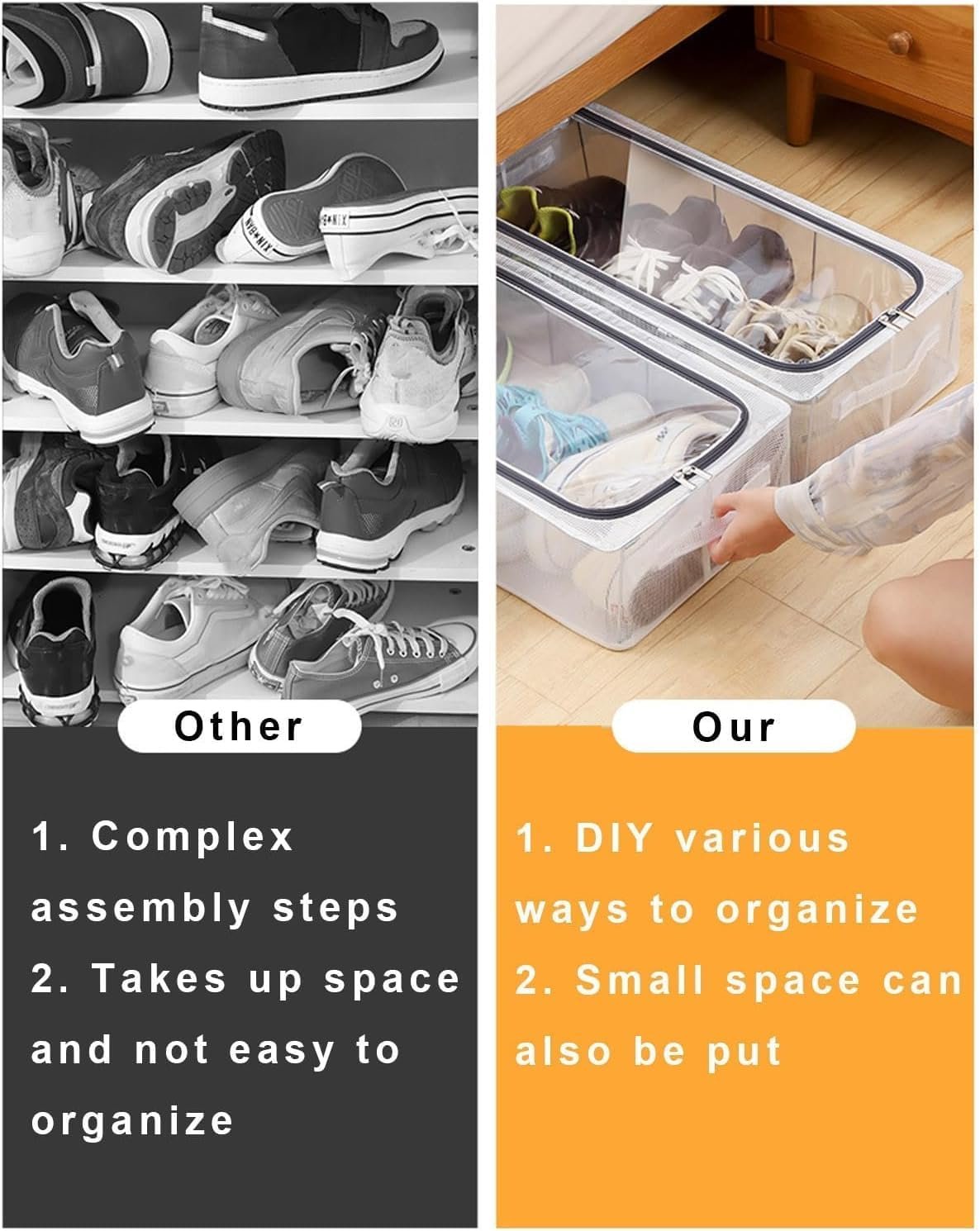 Do you struggle with shoes scattered all over your room, creating clutter and wasting valuable space ? Are you looking for a smart, stylish, and practical way to keep your shoes organized and protected? Introducing the Foldable Under Bed Shoe Organizer, the perfect solution for keeping your footwear neat, accessible, and safe from dust, moisture, and damage. Designed to fit under beds or in closets, it combines functionality, durability, and sleek design in one versatile storage solution.