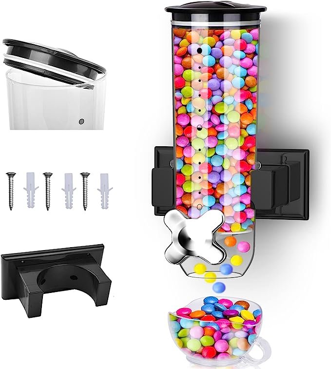 ❺【???????????? ??? ???? ?????????】---- Our grain dispenser, can be used to cereal storage, pasta, snacks, nuts, coffee, candy, even pet food. Candy dispenser can be hung in the home, pantry, coffee shop, shop, bar. Easy for everyone to use. Providing a fun and convenient way to dispense your favorite food.