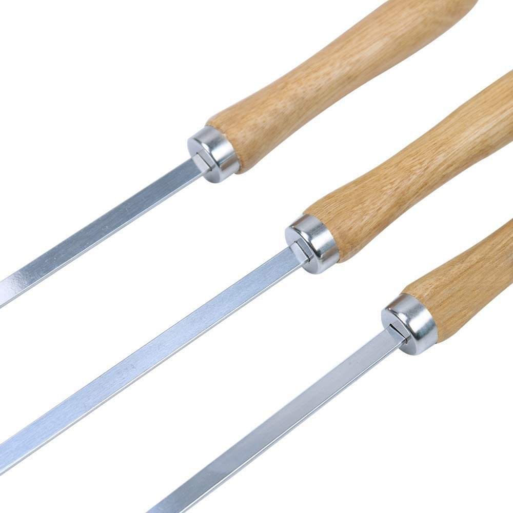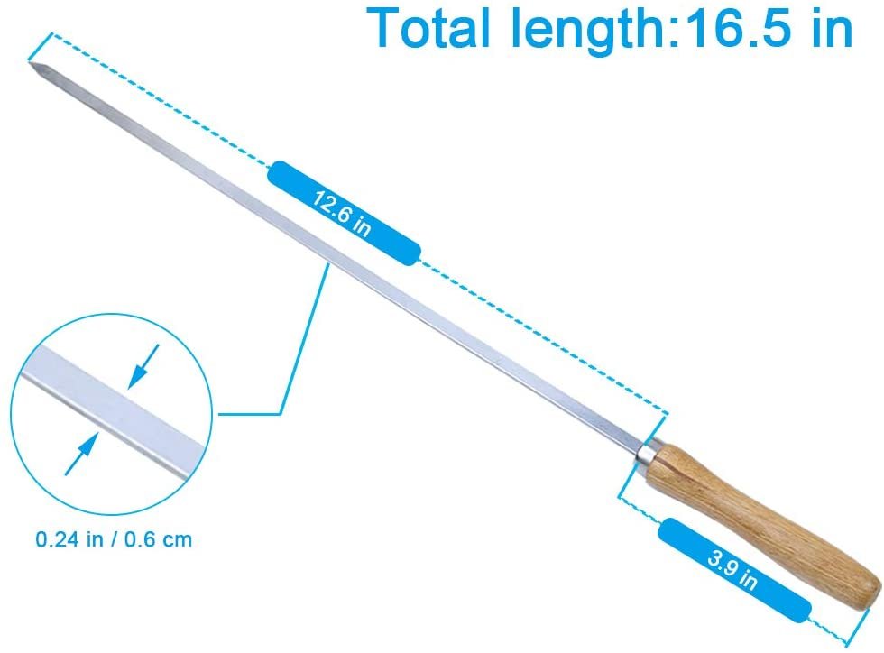 FLAT BLADE AND ANGLED TIP, NO SPINNING ISSUE:The skewers for kabobs are designed to be flat and wide. The flat metal skewers stop the skewered food from spinning or moving around when flipping over kabob skewers on the grill. Stainless steel skewers allow for complete rotation so the food can be evenly heated and seasoned on all sides. The angled tips of these kebab skewers help you to easily pile up without splintering the food. But it is not too pointy so you won’t impale yourself.