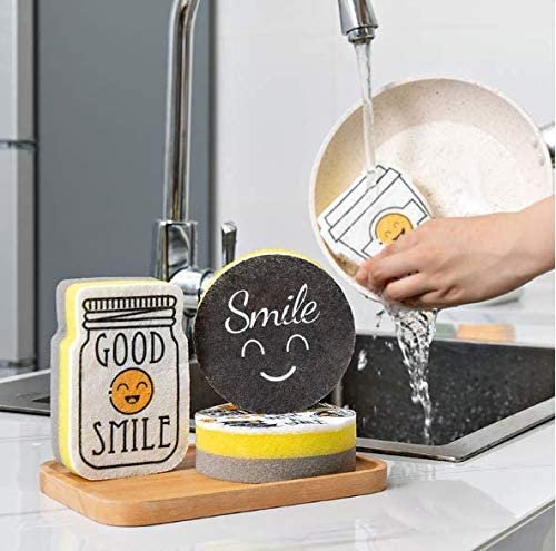 HEALTHY:In the middle of this household cleaning spong is a high-density&high-quality sponge with a water absorption of 2-3 times. It foams easily even with a little detergent. Reusable, They refuse to sour & mildew & STAY FRESH & ODOR FREE !