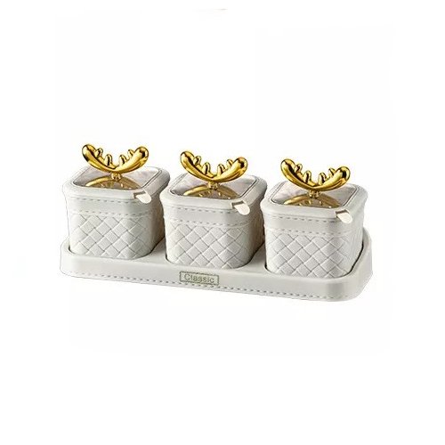 Imitation leather texture, thick material, light luxury gold-plated antler handle Elegant light and luxurious color matching imitation leather texture design, giving you a delicate experience of kitchen storage The set combination is easy to carry, and the kitchen seasoning is done in one set The transparent cover is clear at a glance, and the strong load-bearing wall is stably mounted Product name: Seasoning storage box Color: light blue, army green, red, white Size: as shown Features: large capacity, multi-grid, wall-mounted material: plastic Style: light luxury Quantity: 1