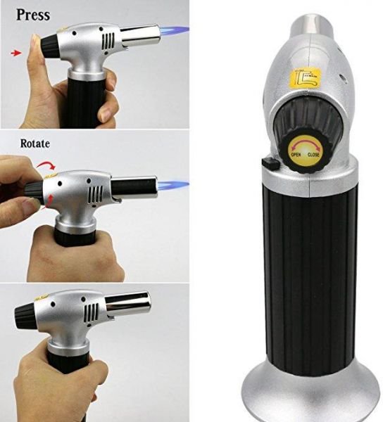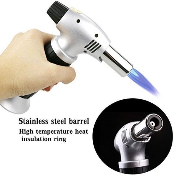 This product is easy to operate, portable, widely used for heating food in the family, small objects welding, industrial welding, including the welding of copper, silver welding, soldering, injection mold from broken expected, set off firecrackers and outdoor camping barbecue and so the best choice and workshops, automobile factories, laboratories, jewelry processing, metal processing and plastic surface of bending an indispensable tool for the local heating, Automatic ignition feature, flame temperature is 1300 degree C, 2450 degree F, air consumption 80g, hour, gas tank is 220g gas, pipe, fire-retardant nylon shell, packaging is of paper Calgary Blister, the largest flame length is 170 mm similar to gas cutting flame gun, flame shortest length is 3 mm similar to a lighter flame.