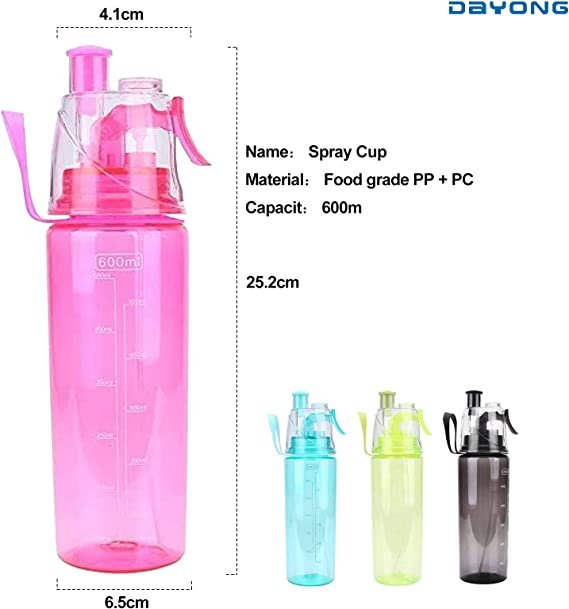 CREATIVE DUAL WATER OUTLETS DESIGN:2 in 1 drinking and spraying bottle,not only for drinking, but also for cooling skin in the summer. It comes with a spray mechanism on the top that allows you to spray a fine mist to the skin surface. Pressing the atomizing nozzle lightly, and can squirt water, make you feel refreshing moisturizing.