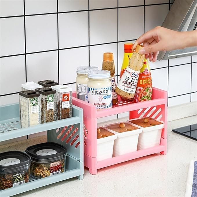 Introducing a versatile storage organizer shelf on tabletop, a must for any organized space. This Folding Shelf is designed to meet different needs, making it ideal for office and home use. With its sleek and compact design, it blends easily with any environment, providing a mess-free solution for storing stationery, spices, cosmetics and more.