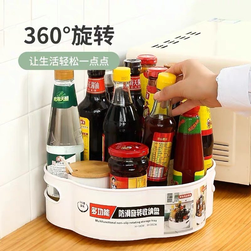 Rotating design: very practical and fashionable. It allows you to access the items you need with a simple turn. The TPR surface keeps items in place and the rim prevents items from falling out.