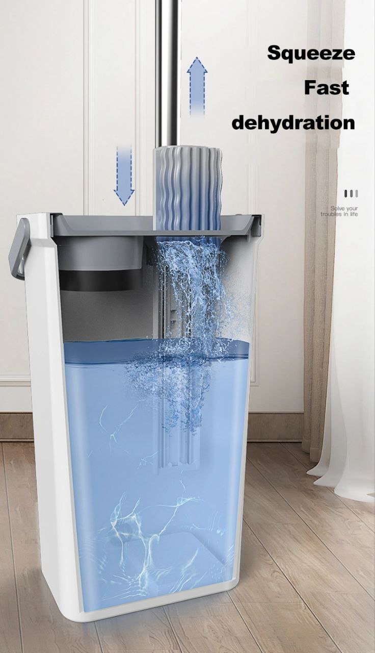Mop and bucket system for floor cleaning, multifunctional cleaning bucket with the function of mop cleaning, drying and storage. This automatic wash and dry mop and bucket system, this all-in-one mop system allows you to wash, rinse and dry all at the same time. Your hands never have to touch the mop to clean or wring it out. Mini bucket saves space, saves water. INCLUDES SQUEEZER BUCKET AND MOP MOP