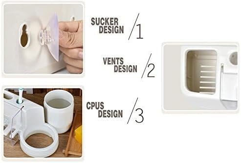 Plastic flaps cover the toothbrush bristles preventing dust from accumulating on the bristles. It has a hook that can hold napkin, tongue cleaner or mugs.
