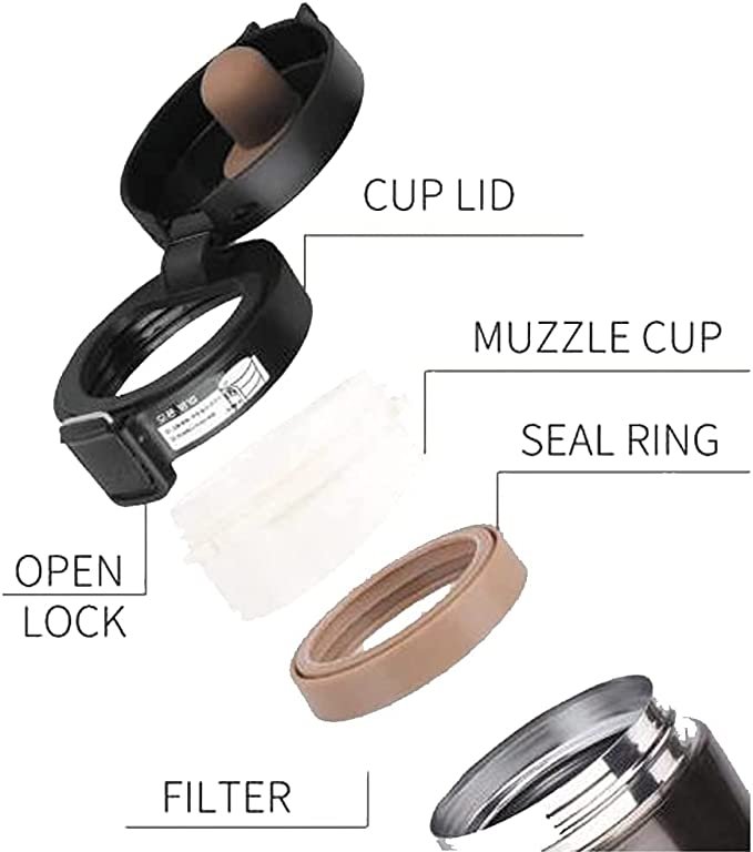 【PERFECT DESIGN】:The cup body is made of double layer stainless steel, vacuum insulated, and perfect coating treatment. The inside of the cover is combined with a leak-proof polypropylene silicone ring. Cup mouth soft cup with large diameter, easy to clean, with detachable filter net, can filter away residue like tea
