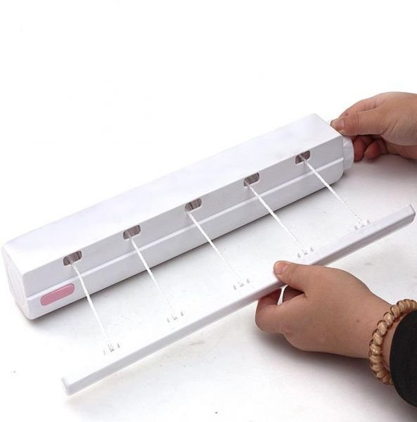 CONVENIENT SPACE SAVING - The practical and space saving clothesline is perfect for bathroom, kitchen, laundry room, veranda or balcony. It also has 5 hooks for hanging accessories, bath utensils, and more.