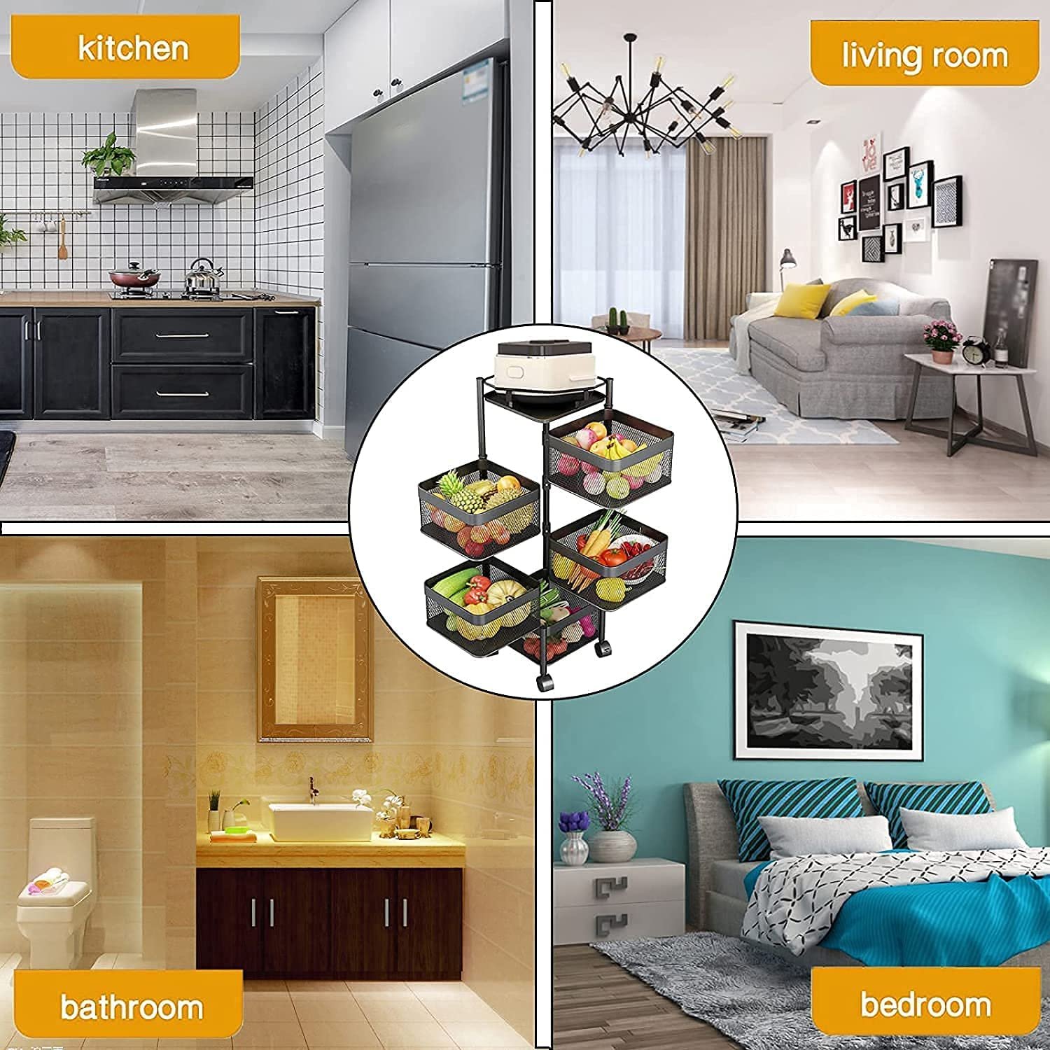 【High Quality Materials Rotating Vegetable Rack】: The storage rack organizer with high quality and environmentally friendly paint, it is not easy to rust even if it is placed in a humid environment for a long time. Therefore, you can safely put the storage rack in the bathroom or any other place.
