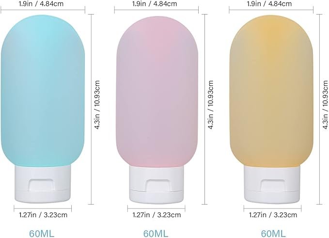 【3 Piece Reusable Container】The travel bottle set is a 60ml squeeze bottle, which consists of three colours that can be easily distinguished by the colour of the bottle.