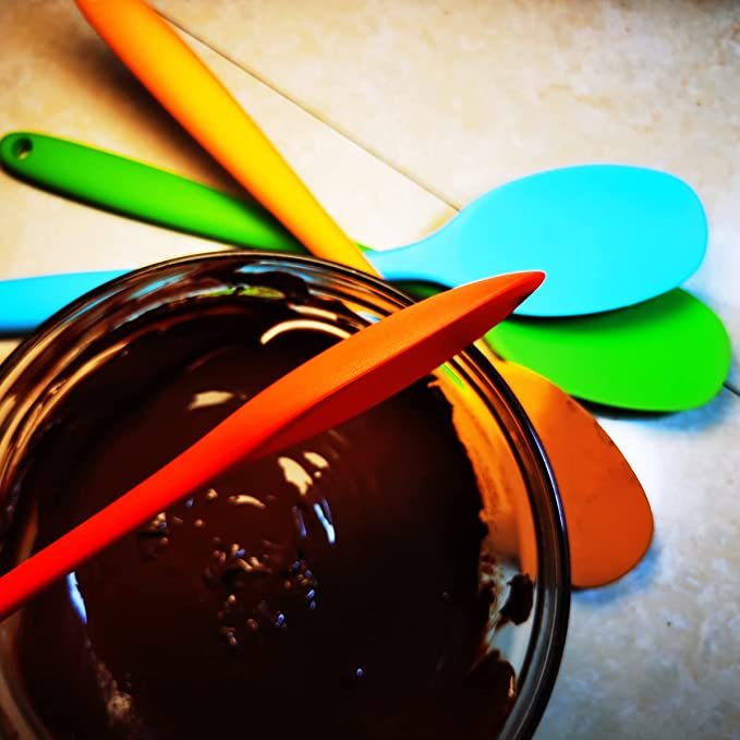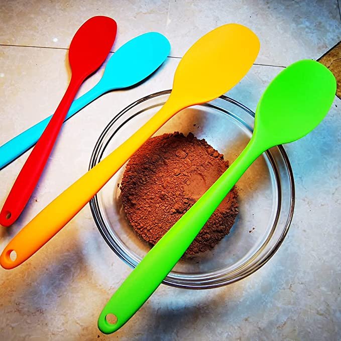 Quality material: the silicone mixing spoons are made from silicone, flexible tip and non-stick features. This Spatula spoons have stiff handles but flexible tips smooth and very soft edges protect your hands and tableware from scratch. No Scratch for your pots and bowls. Silicone spoons are characterized by high temperature resistance, provide convenience to stir and mix food during cooking, no need to worry that they would melt.