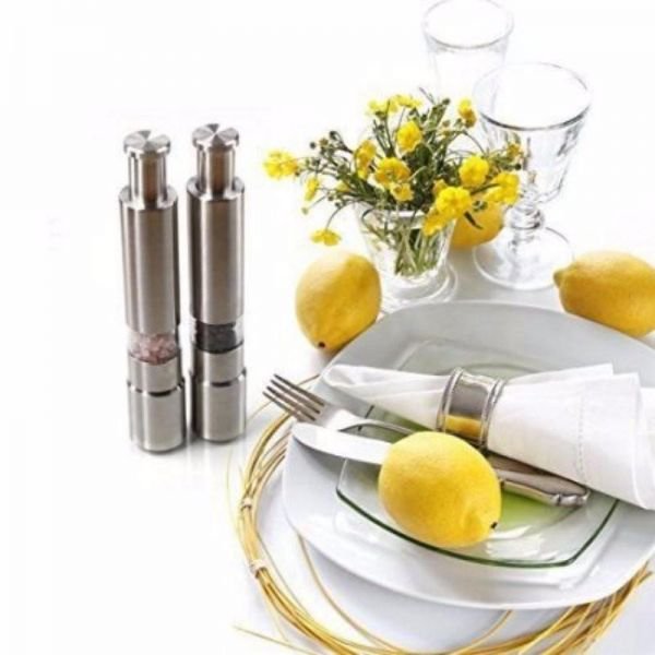 Quick and easy to use, just add your favorite spices to the salt and pepper mills, then quickly grind and shake them and place them on the plate.