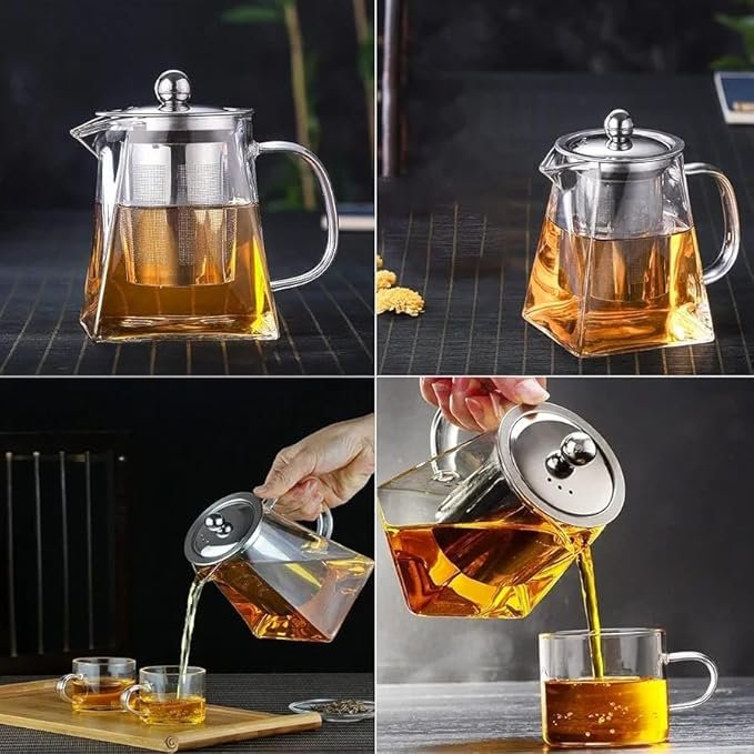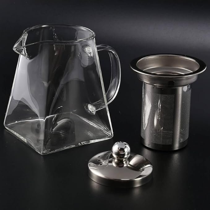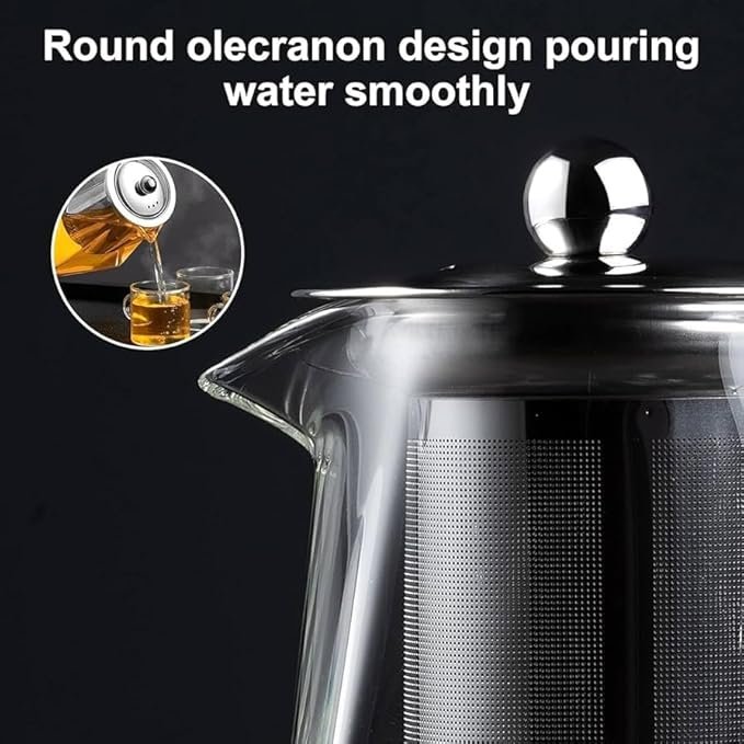 【Stovetop safe】Lead-free, free of any metals and toxins. Our glass teapot are made of borosilicate lead-free glass that is scratch resistant and can withstand temperatures from It can also be placed directly on stove top or electric stove.The glass tea kettle is stovetop-safe, microwave-safe and dishwasher-safe. 【Removable Infuser】This glass teapot has a removable glass infuser. This infuser is made of stainless steel and has an ultra-fine strainer that can filter most teas. You can use this glass tea pot to brew loose leaf tea, tea bags, fruit tea, herbal tea. 【ERGONOMIC DESIGN】The glass tea kettle is specially designed for one-handed operation. This glass tea pot is designed like an eagle's beak, and the pouring water flows more smoothly and continuously.Dishwasher safe.
