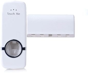 - No More Messy sticky bathroom sinks! No More Crusty toothpaste tubes! No More Fighting for the last drop of paste! No More Kids leaving behind a mess in the morning! No more wasted toothpaste. Dispenses quickly with little effort. Keeps your bathroom clean and tidy. No need to handle irritating tubes. One-touch option, use conveniently; Works for every brand of toothpaste. Saves your money because it uses every last drop of toothpaste. Kids love to use toothpaste dispenser. Take the mess out of your mornings with toothpaste dispenser. Toothbrush holder: With covers, keeps your toothbrushes clean. Can simultaneously released five toothbrush. Come with a attached adhesive pad to facilitate the use of adsorption of the different walls.