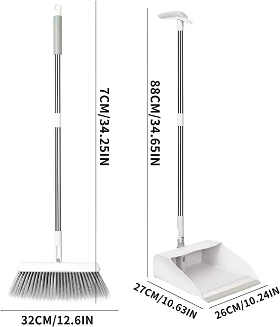 2+: Save Space With Our Compact Design: Keep your kitchen and other rooms in the house clean and tidy with our broom and dustpan in a stand-up position.