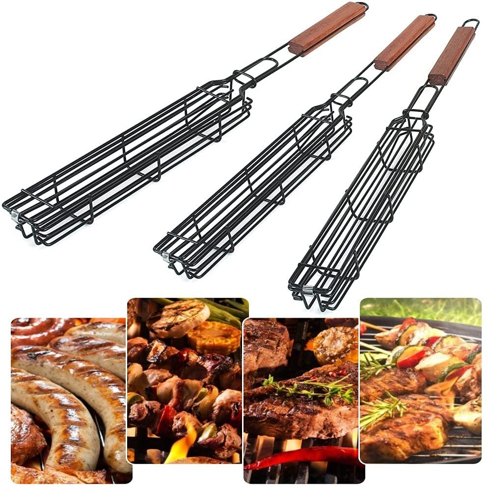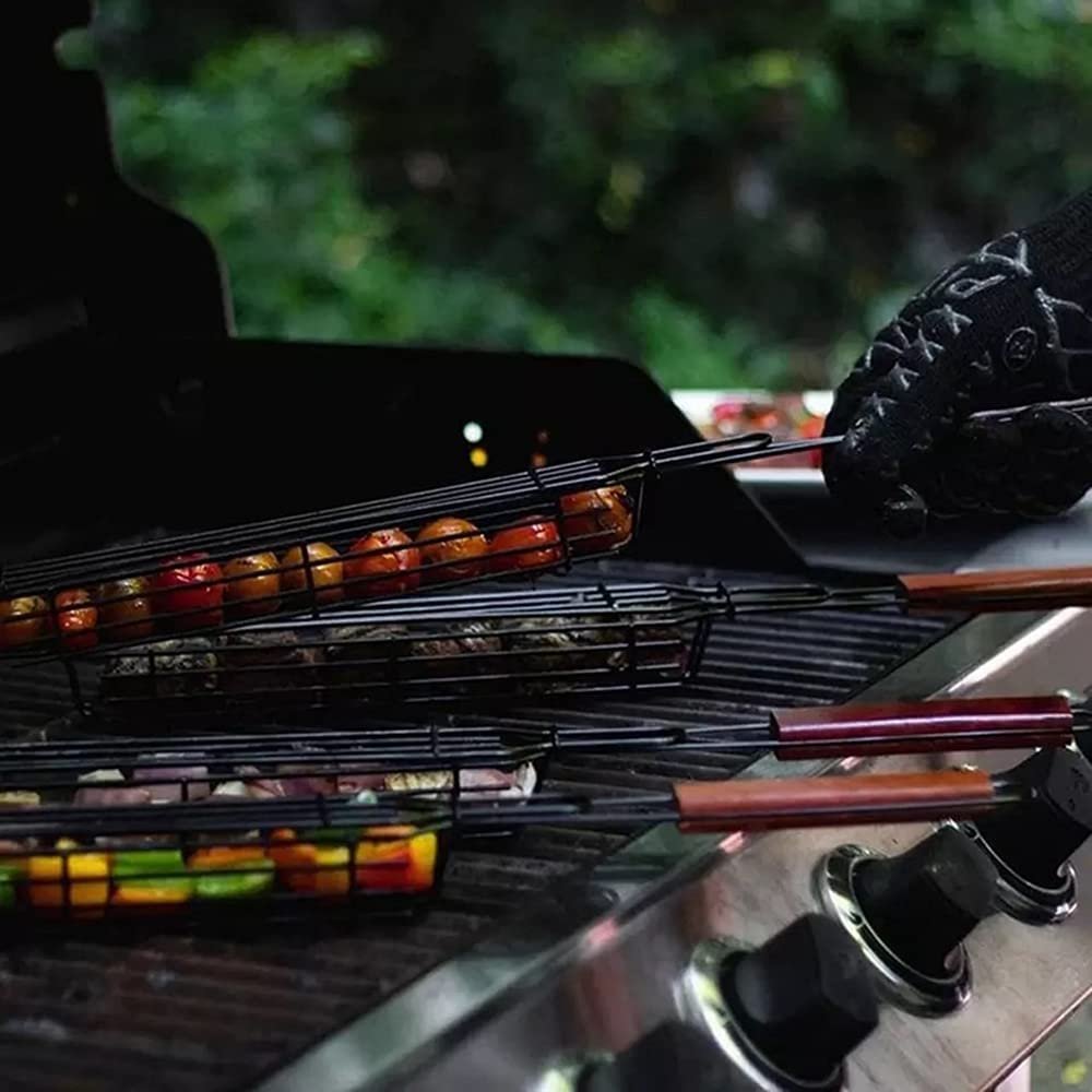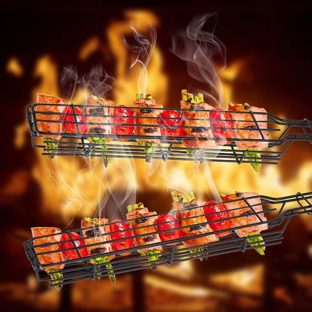 [No Skewers Needed]: Non-stick single kabobkebab basket is no need to use a skewer, and the basket design makes for easy flipping. Just chop kabob components like they're about to be skewered, but instead of impaling them on a stick, just place them in the baskets.